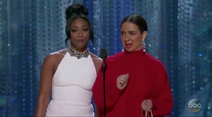 Best Presenters: Despite the fact that the funniest segment of the night came during the introductions of short films with serious subject matter, Tiffany Haddish and Maya Rudolph made a convincing claim to host next year’s Oscars together. As they recalled the #OscarsSoWhite controversy of a couple years ago, and comically suggested that the show has become “too black,” they quickly remembered just how many white people were standing backstage alone. Haddish joked that white people with clipboards always freak her out. “What are they writing down about me?” Moments later, in what can only be an Oscars first, the two women complimented each other on their respective defecation scenes in Girls Trip and Bridesmaids. “I want you to be my momma one day,” Haddish then yelled at Meryl Streep before leaving the stage.
